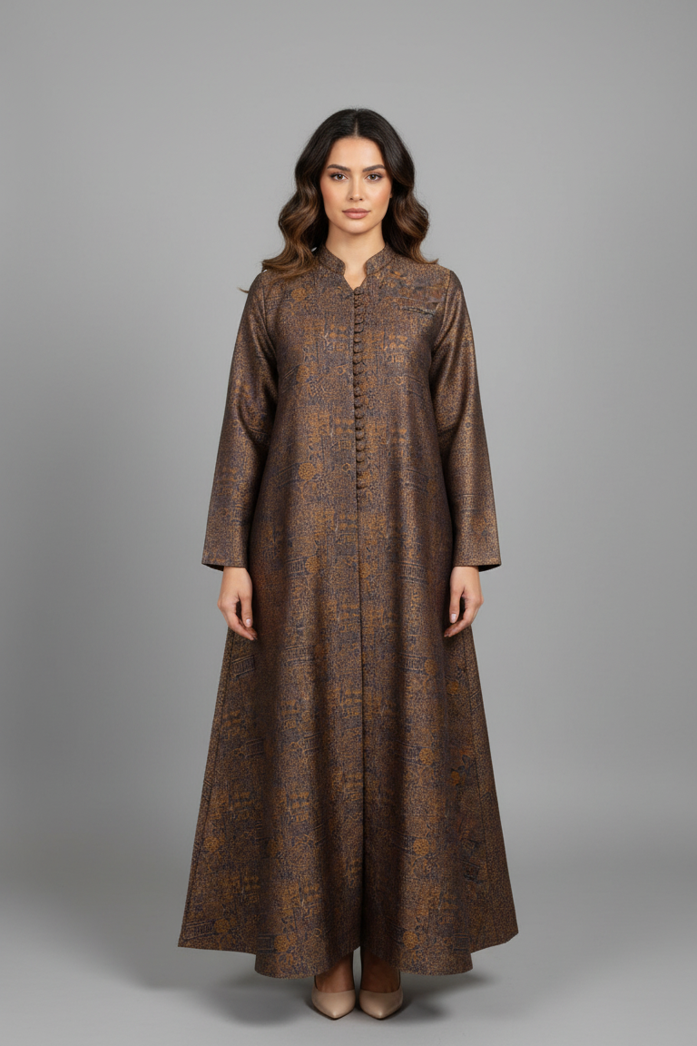 Abaya made from special Rolex fabric with pockets, side zippers and elegant buttons