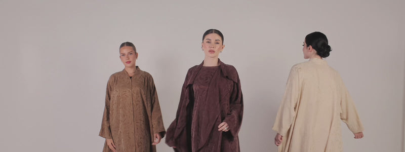 Inner piece under the abaya made from washed jacquard silk fabric patterned in Deep Marron.