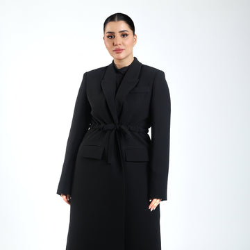 عبايه من خام الرولكس الخاص الأسود بليزر واسع مع ربطه عملية و أنيقه