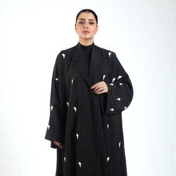 عباية مطرزة مصنوعة من الكريب. تصميمها مفتوح من الأمام ومطرزة، ومتوفرة باللون الأسود. صُممت في...