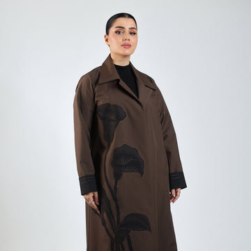 عبايه من خام الصالونا الياباني الأصلي أسود امارتي مع تطريز يدوي بشكل أزهار الكالا ليلي...
