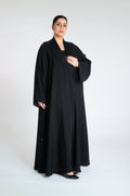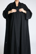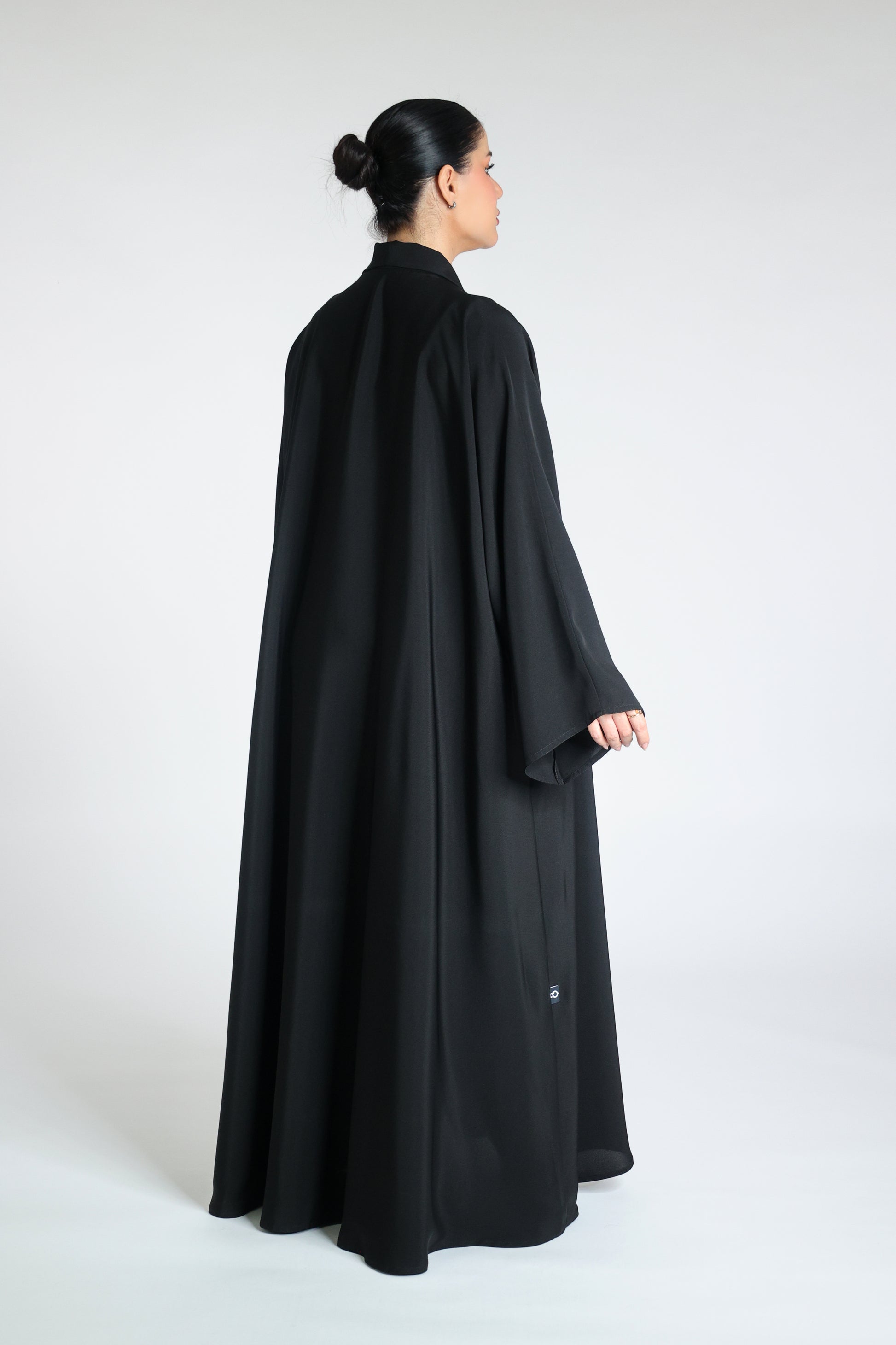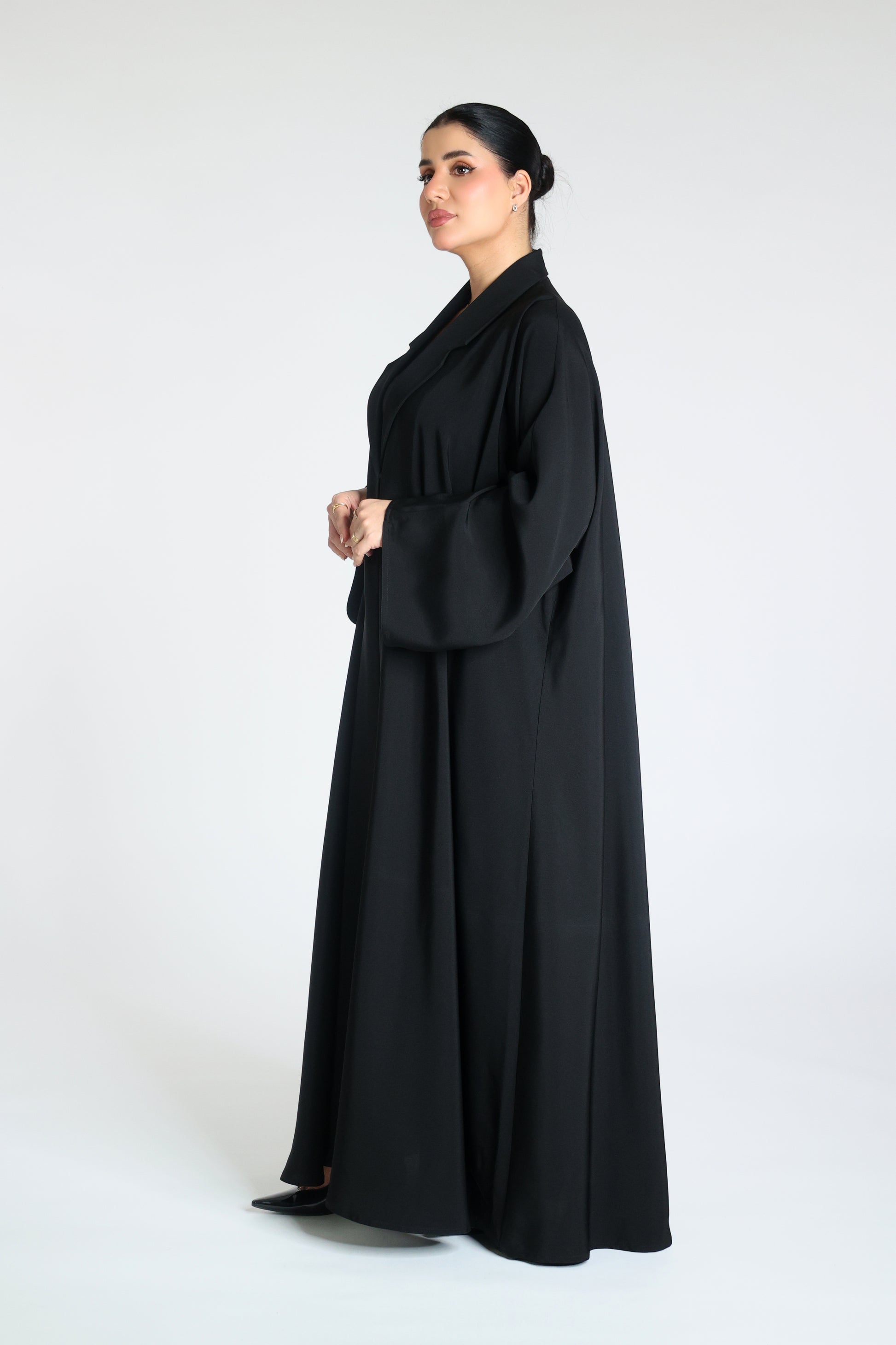 عبايه من خام الصالونا الياباني الأصلي أسود امارتي ساده مع ياقة أنيقة و عملية