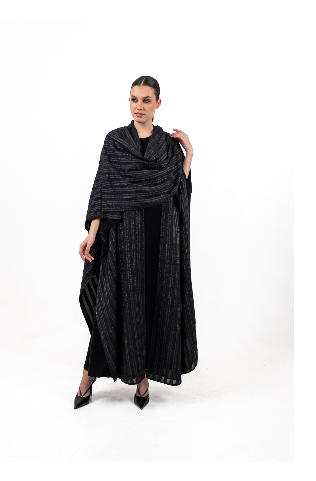 Navy Blue  Crepe Crystalized Open Besht Abaya