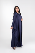 NAVY BLUE ABAYA SET FARASHA STRAIGHT SLEEVE WITH FRONT CRYSTALIZED PATTERN