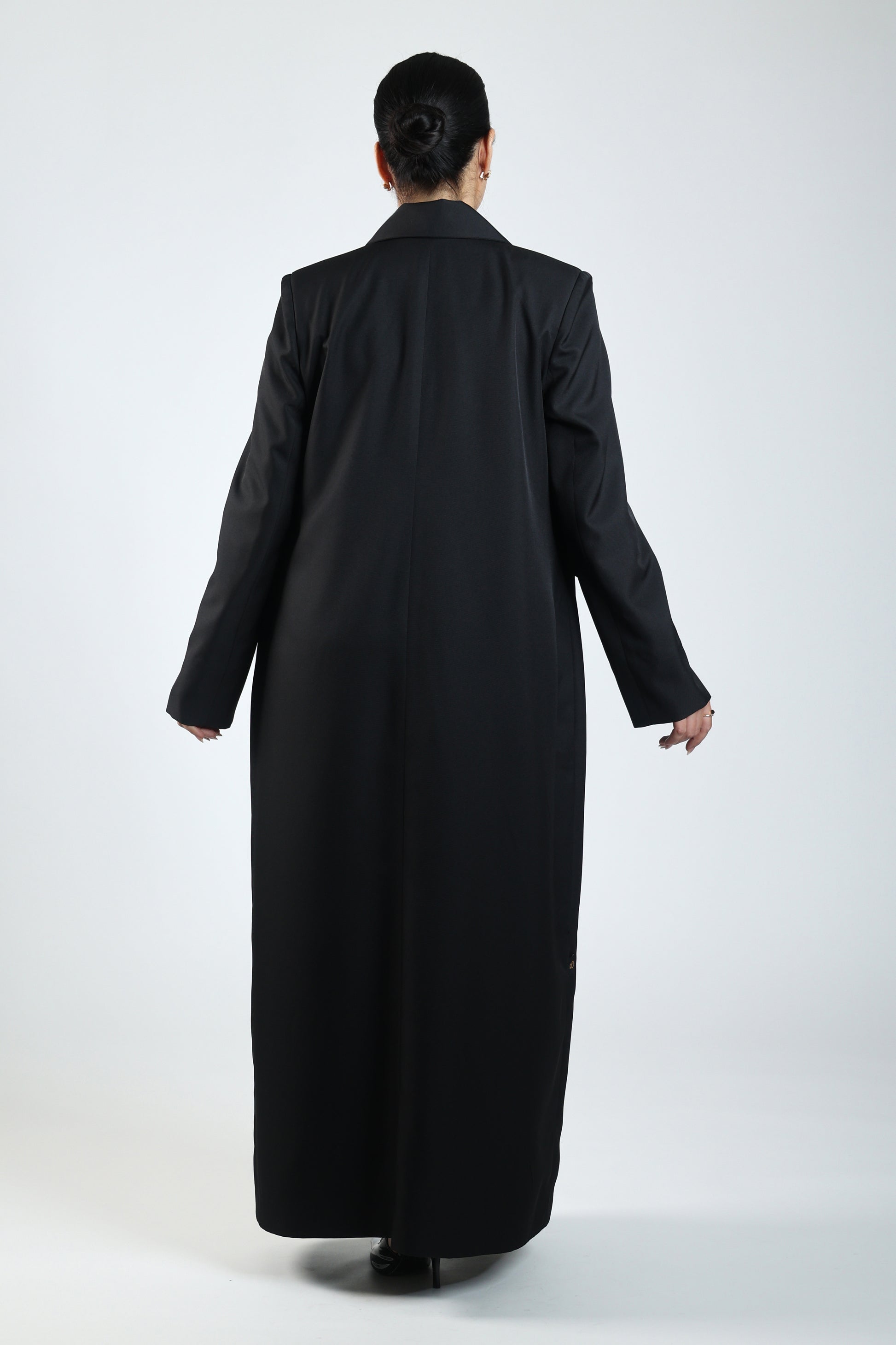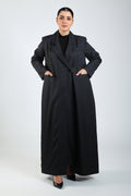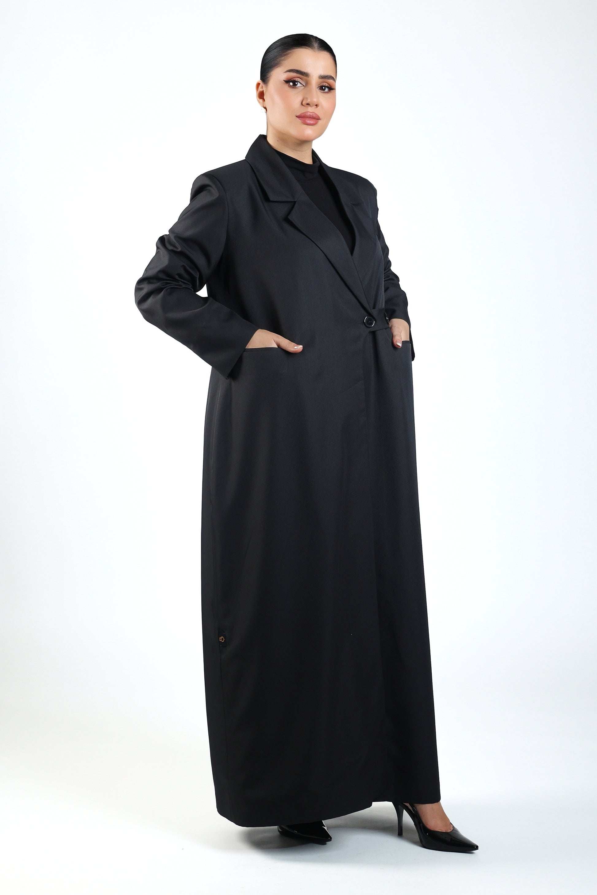 Abaya made from gabardine fabric in black blazer style with a side tie; modern and practical