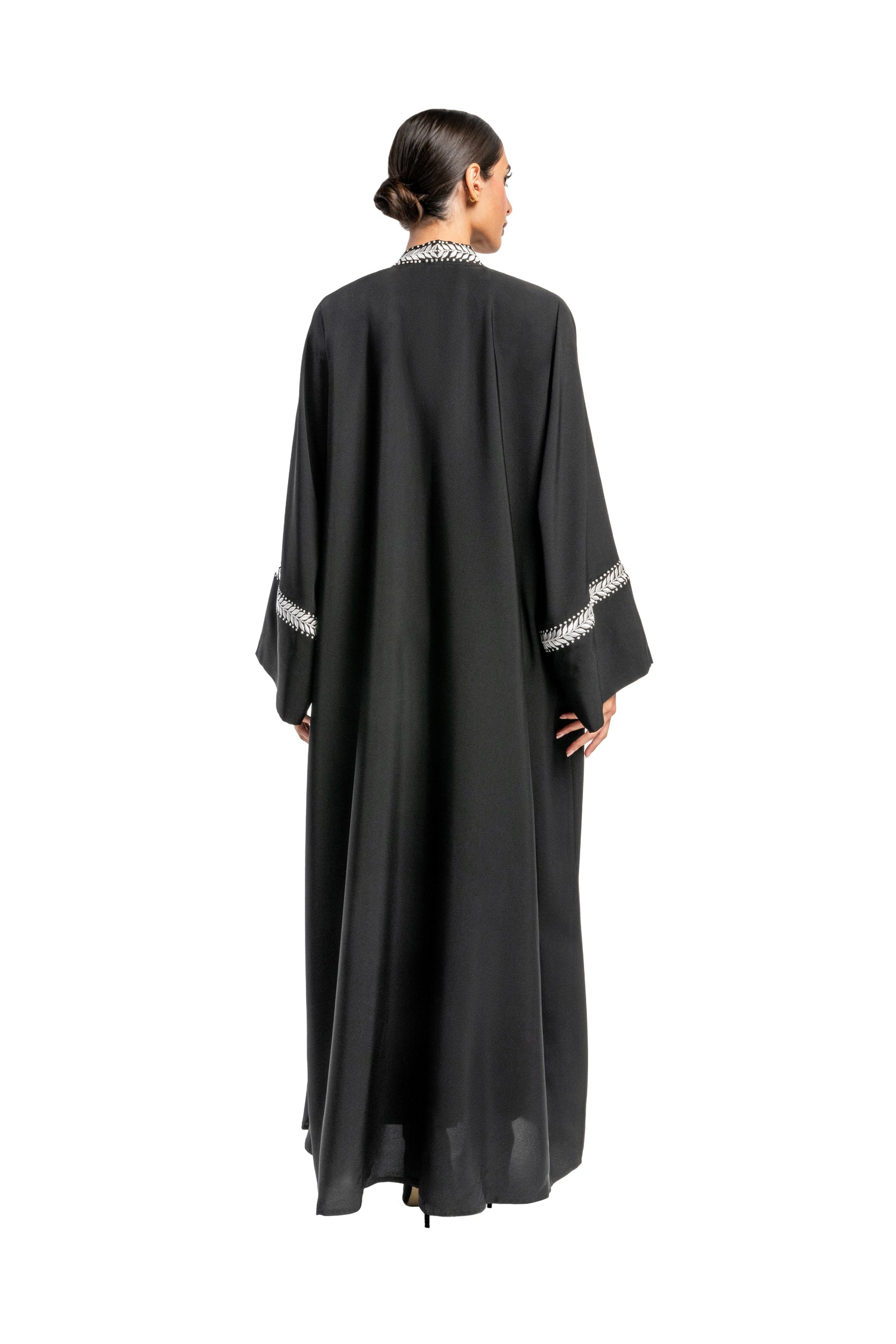 Embroidered abaya is made from soalon. It has embroidery and comes in Black. Designed in Kuwait and shipped worldwide.