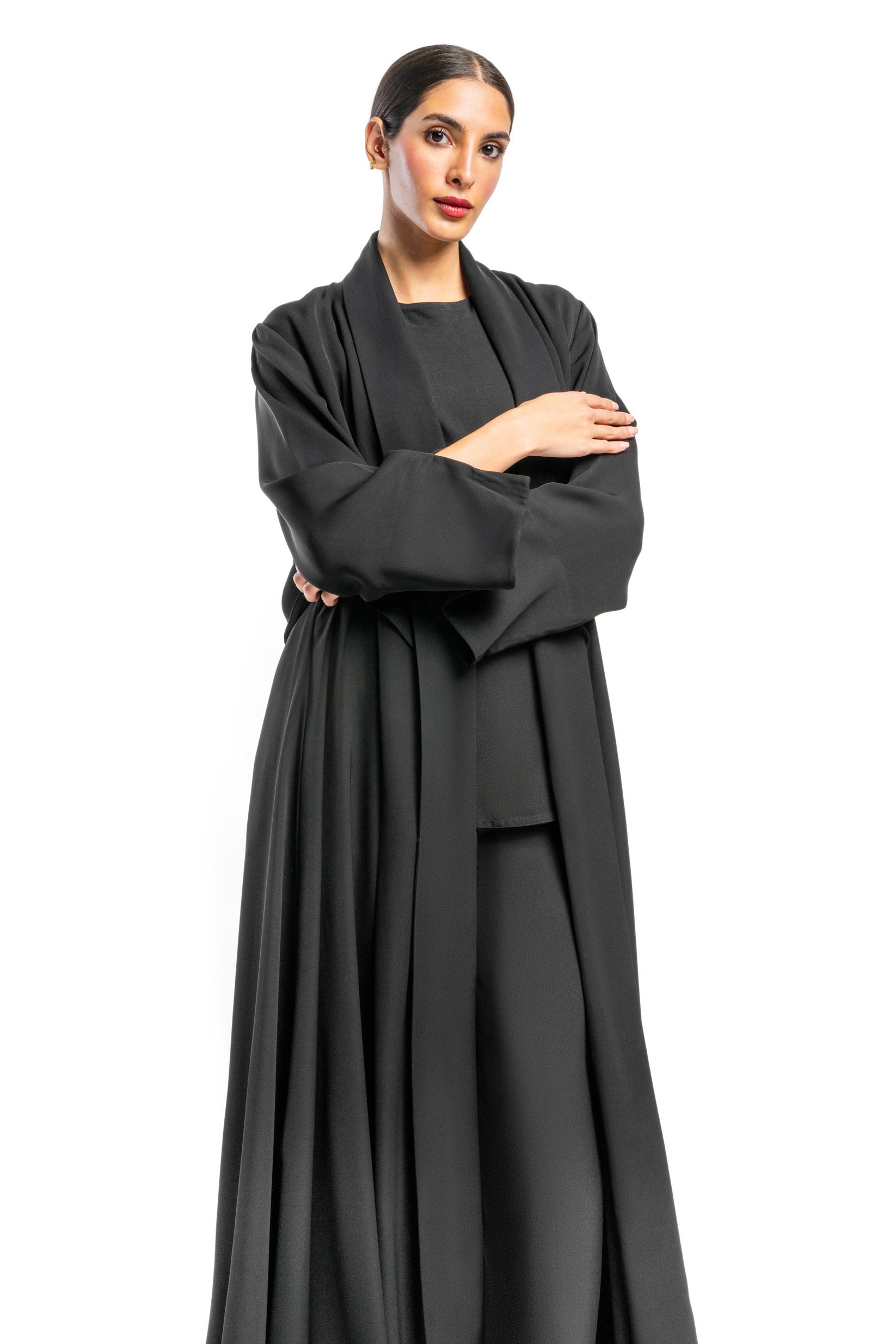 Plain abaya is made from Special Bait Hanayen Crepe. It has open front design and comes in Black. Designed in Kuwait and shipped worldwide.
