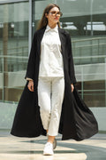 Plain Buttoned abaya is made from crepe. It has open front design and comes in Black. Designed in Kuwait and shipped worldwide.
