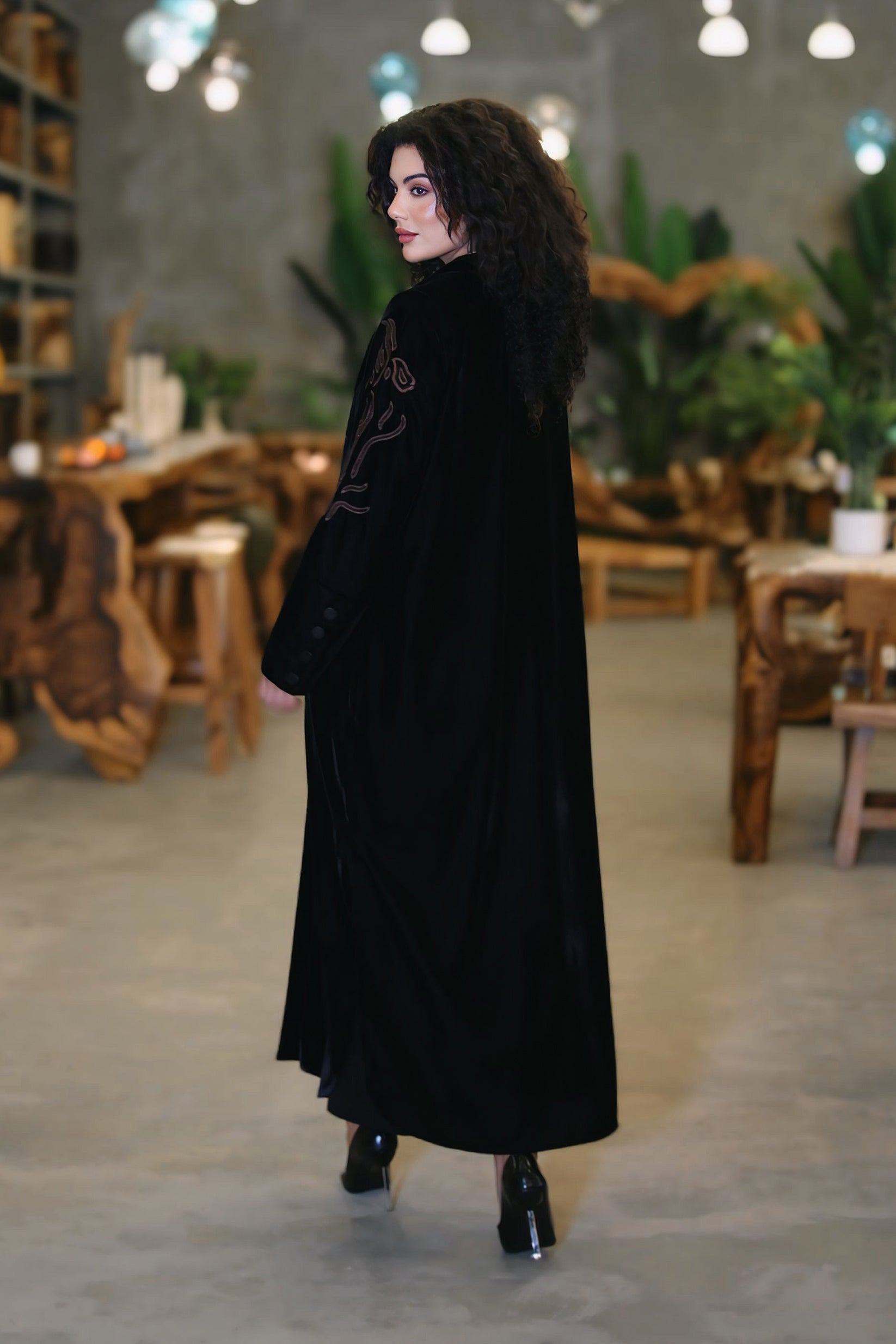 Hand Embroidery abaya is made from Special Bait Hanayen velvet It has comes in Black. Designed in Kuwait and shipped worldwide.
