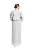abaya is made from linen . It comes in White. Designed in Kuwait and shipped worldwide.