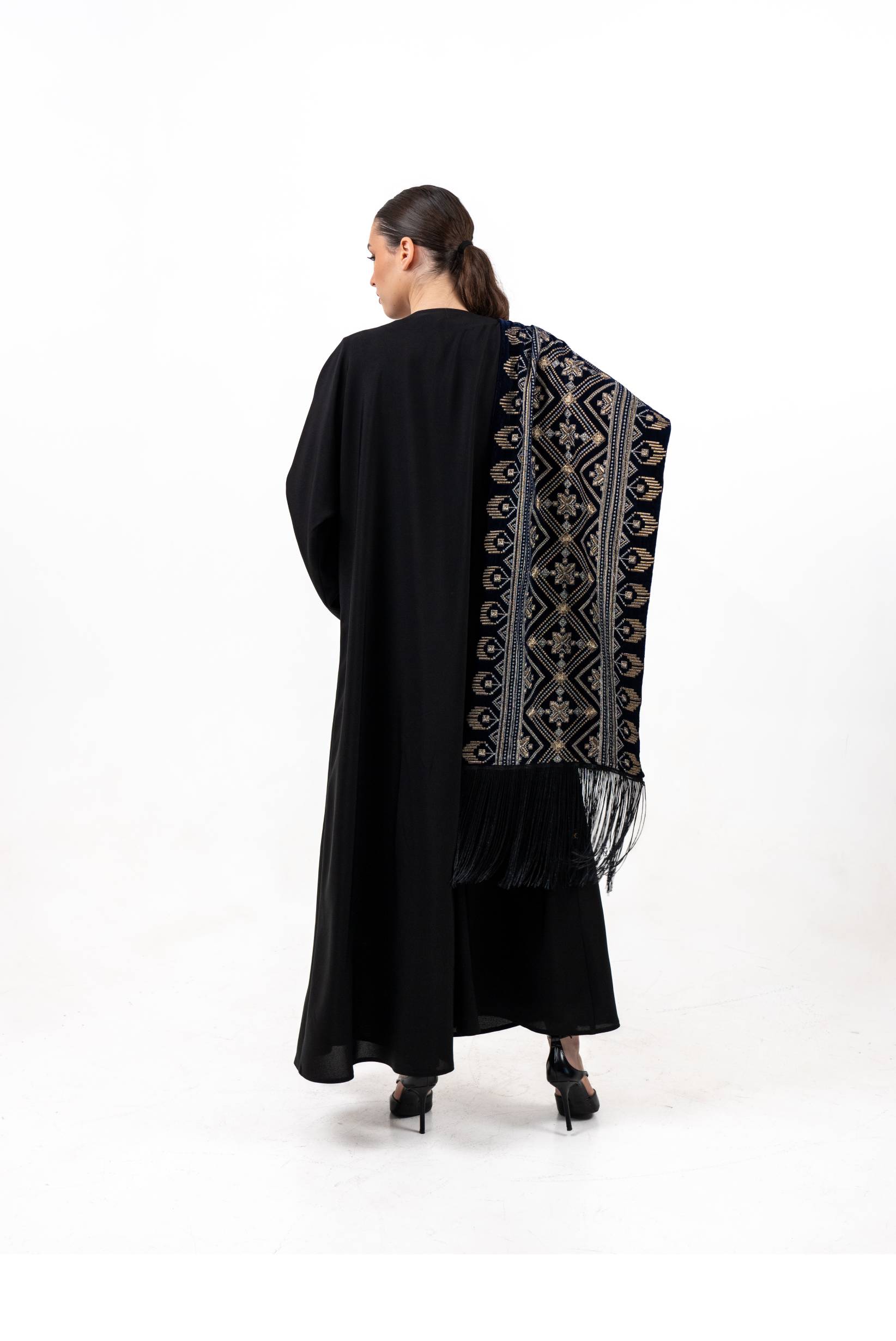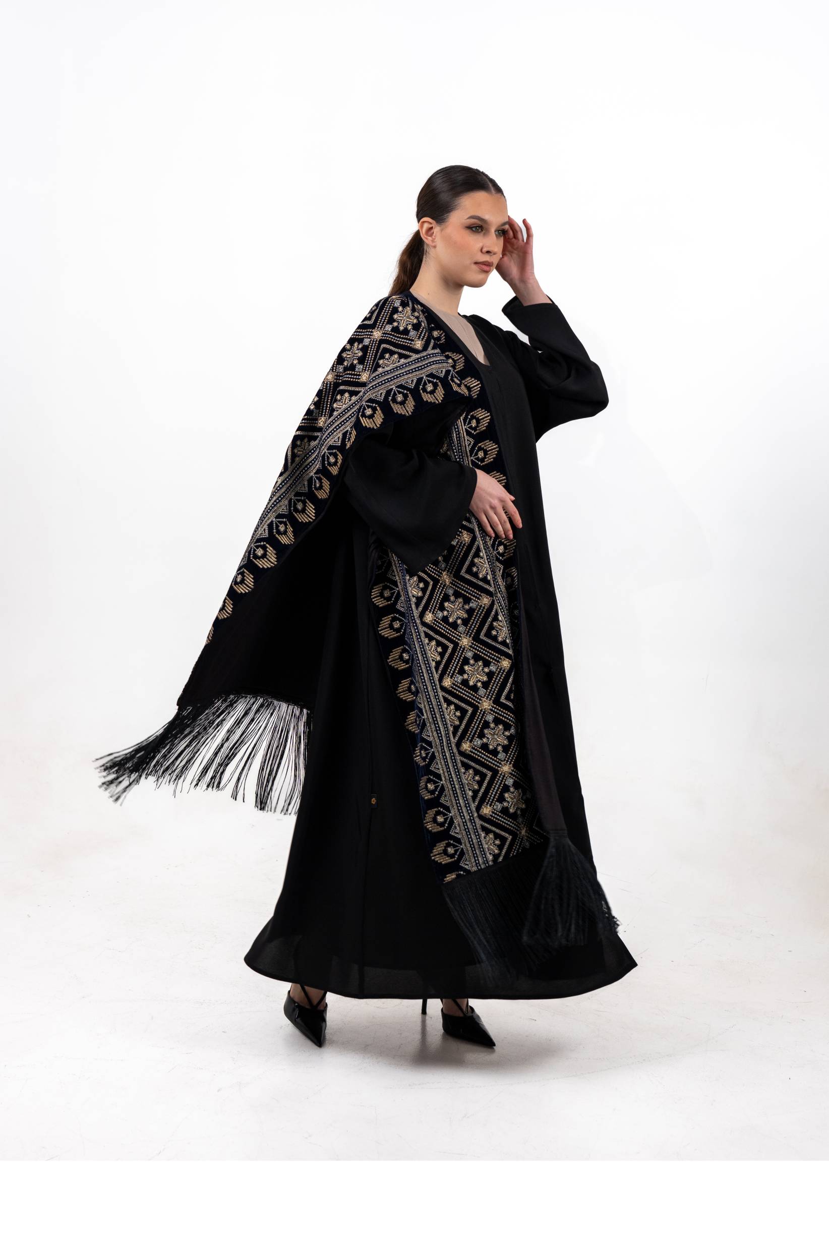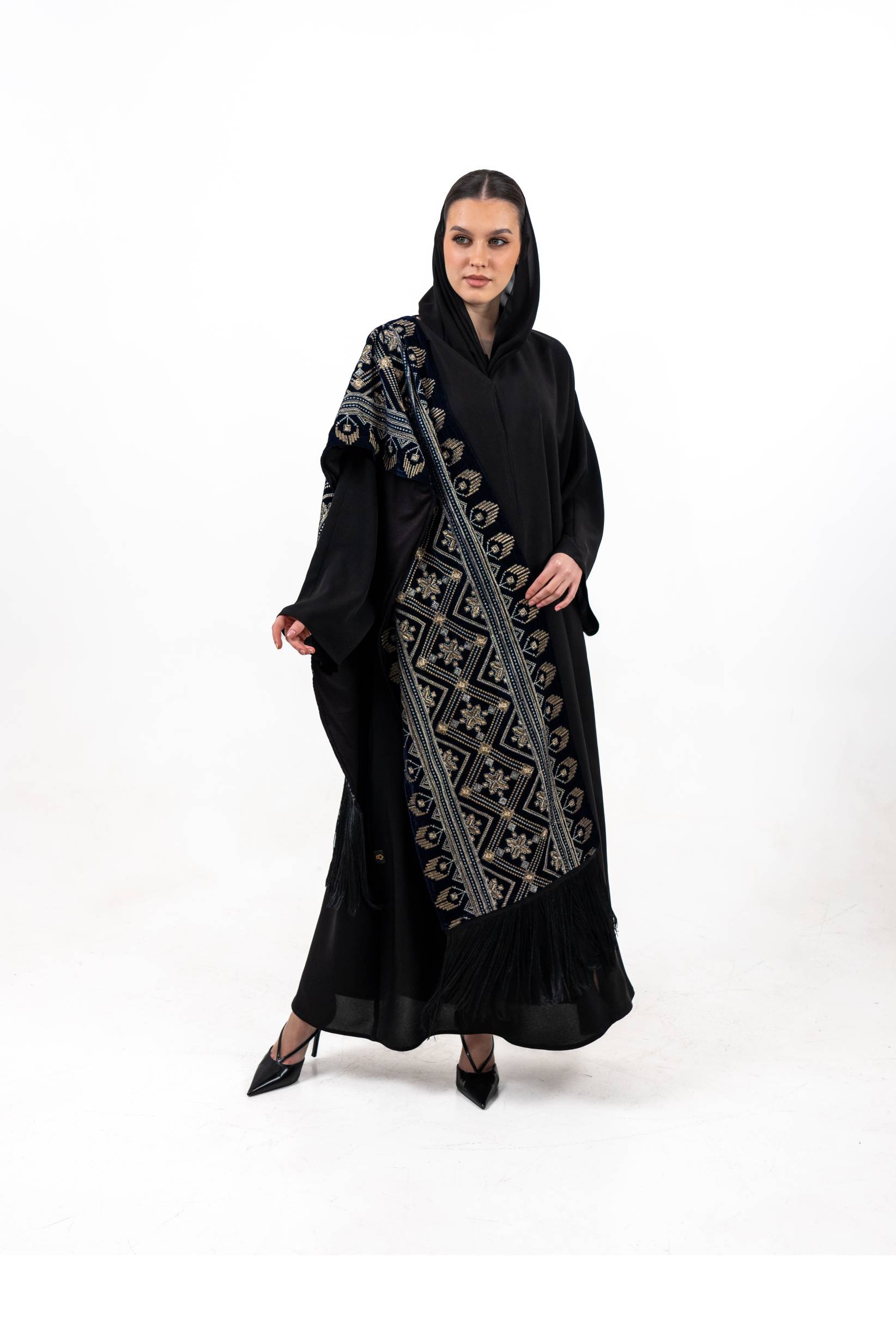 Embroidered abaya is made from soalon. It has embroidery and comes in Black. Designed in Kuwait and shipped worldwide.