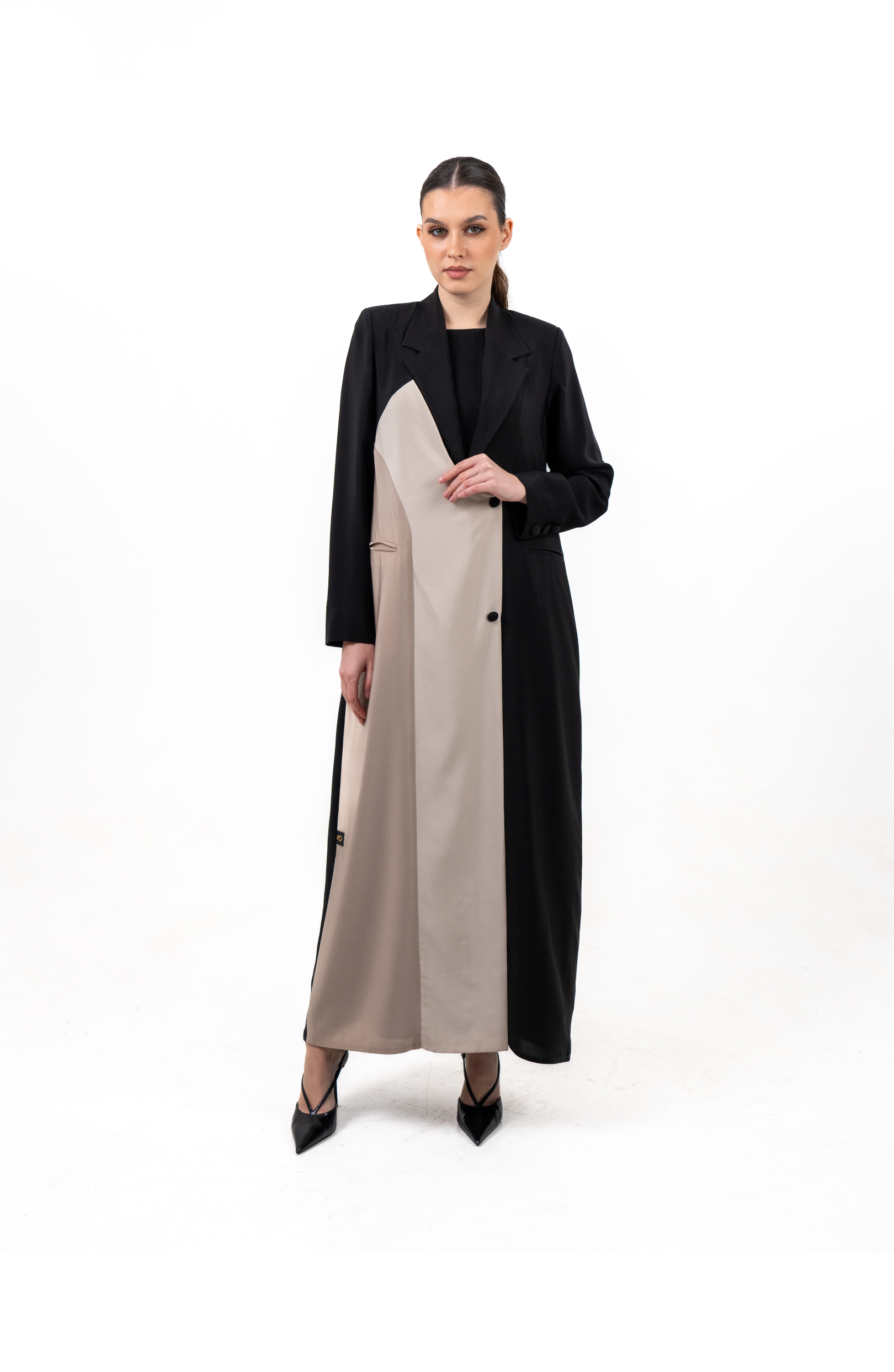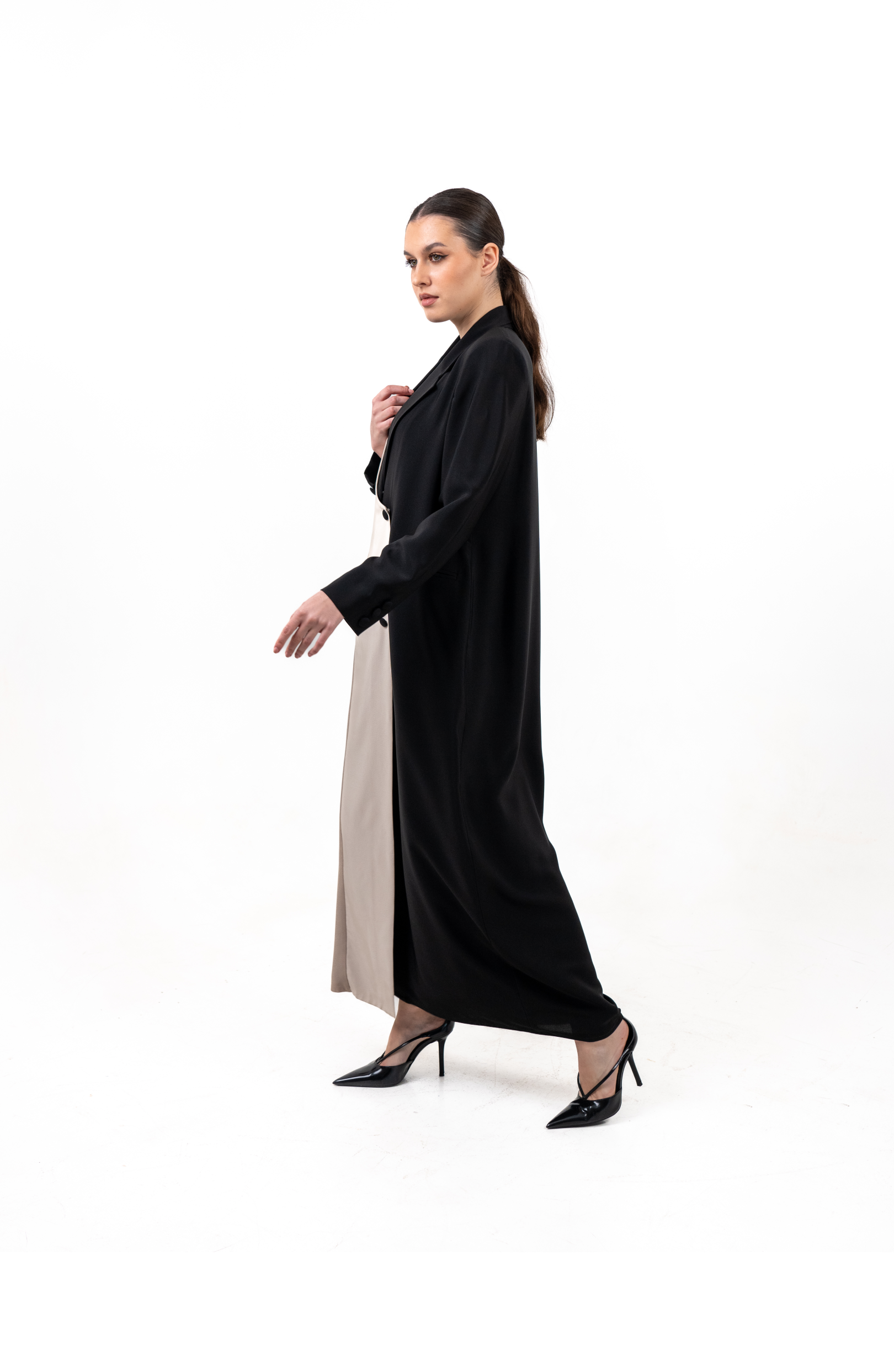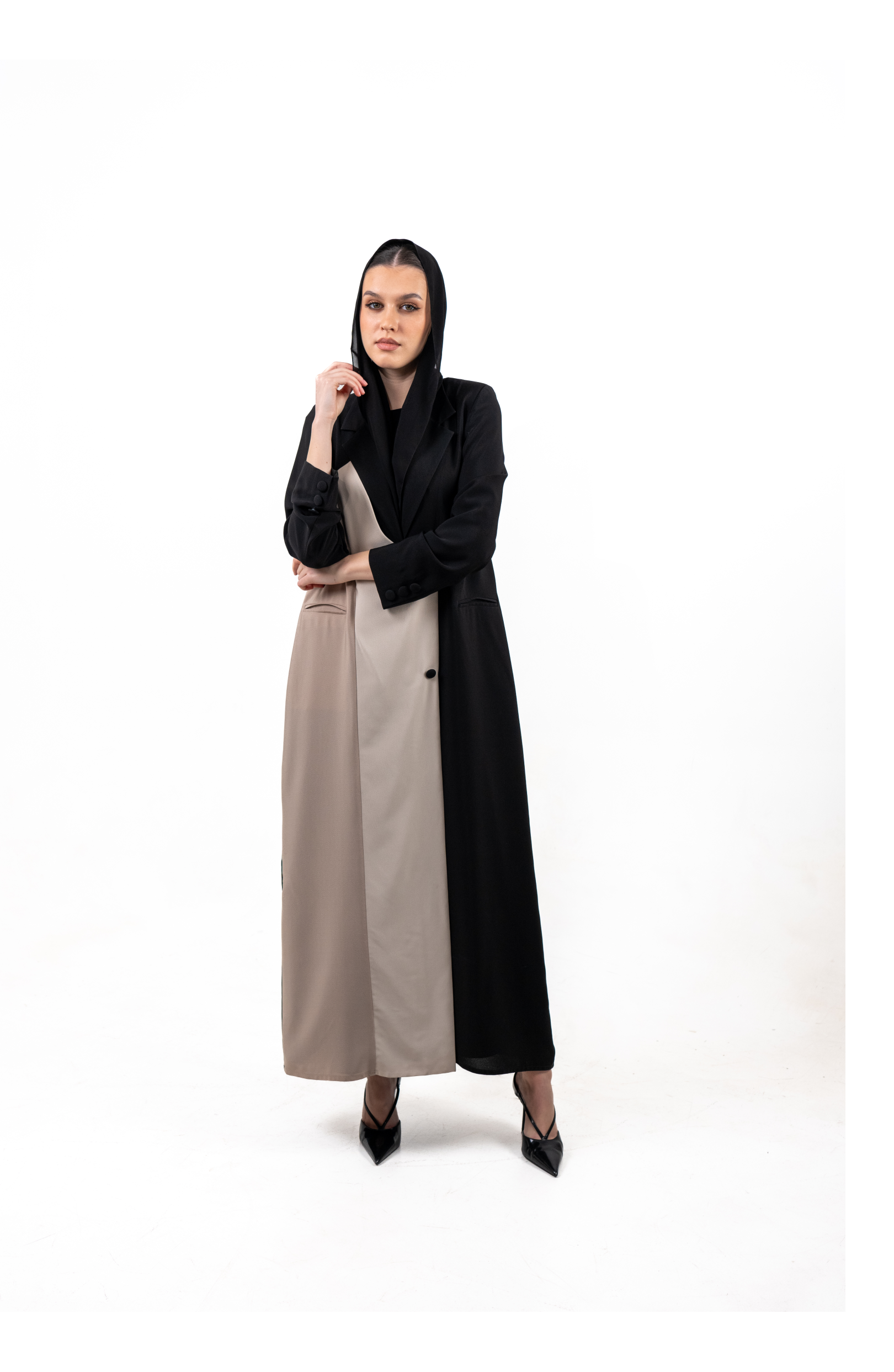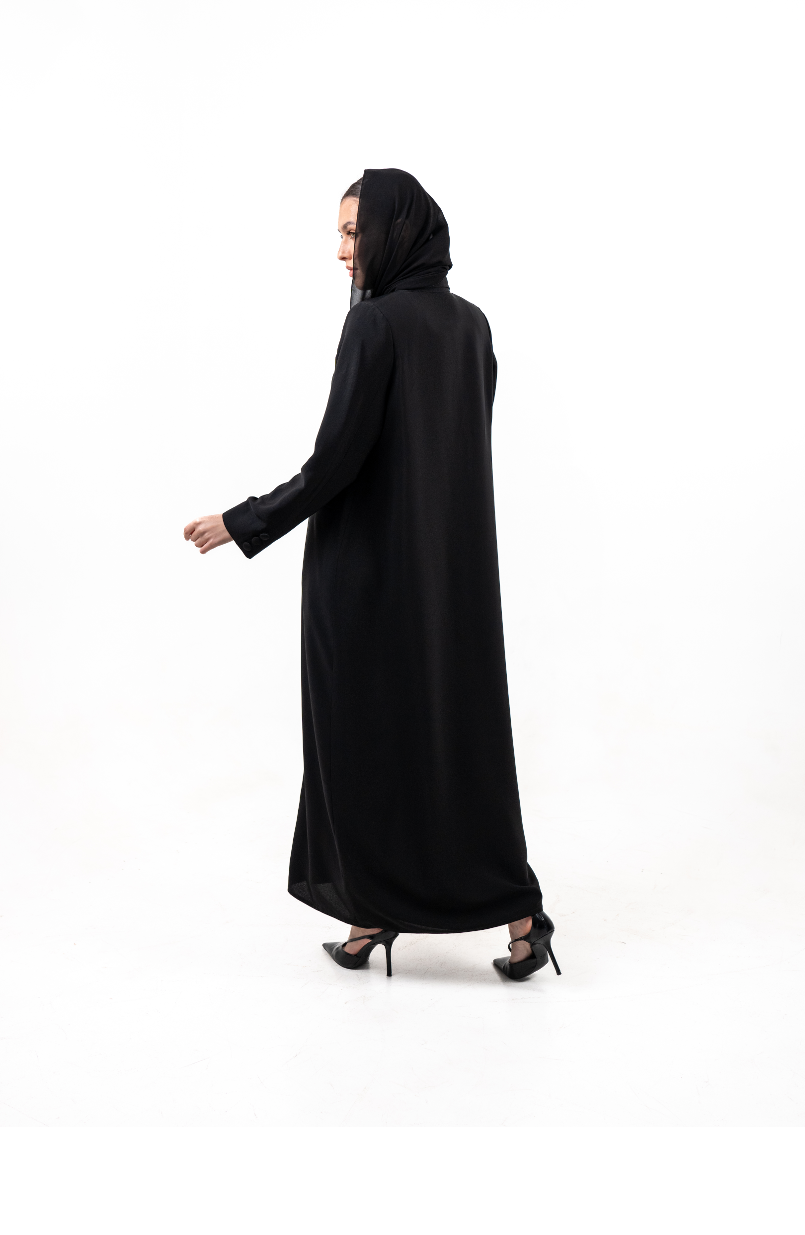 abaya is made from soalon. It comes in Black. Designed in Kuwait and shipped worldwide.