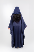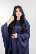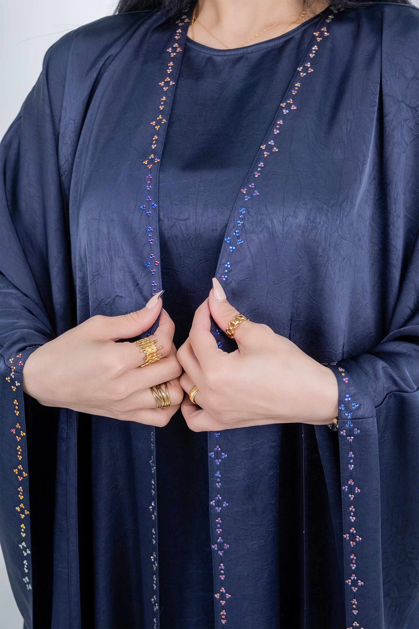 NAVY BLUE ABAYA SET FARASHA STRAIGHT SLEEVE WITH FRONT CRYSTALIZED PATTERN