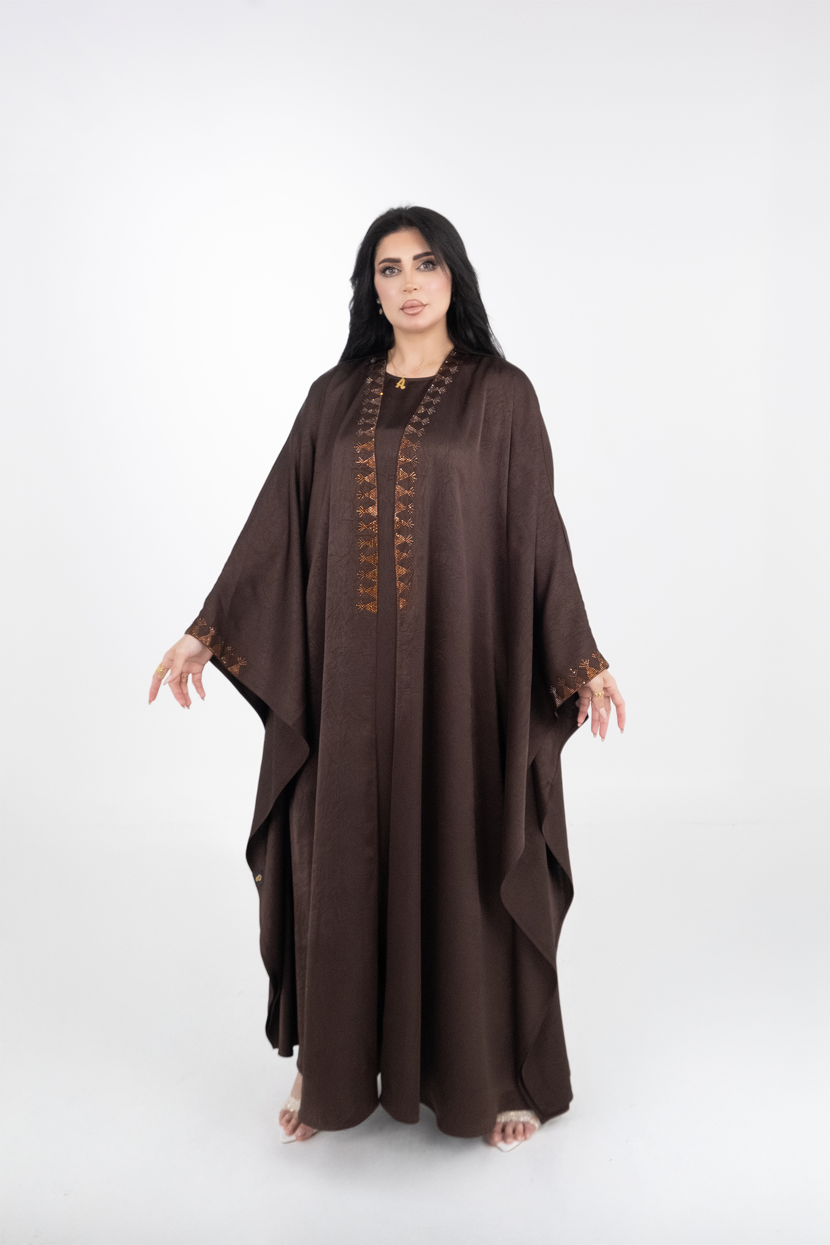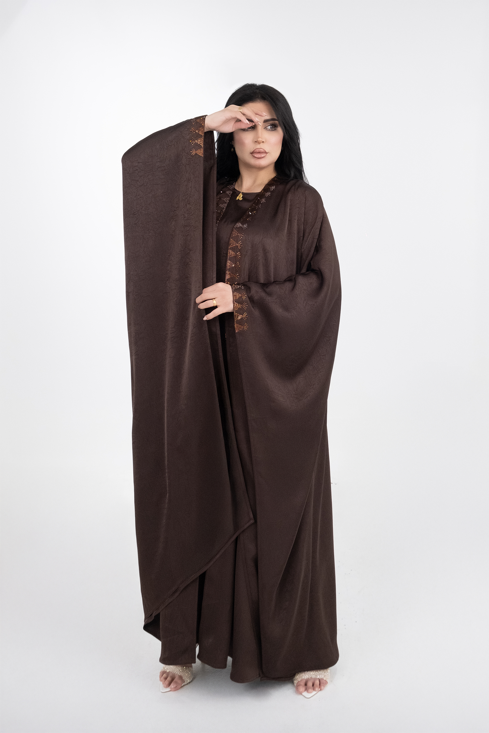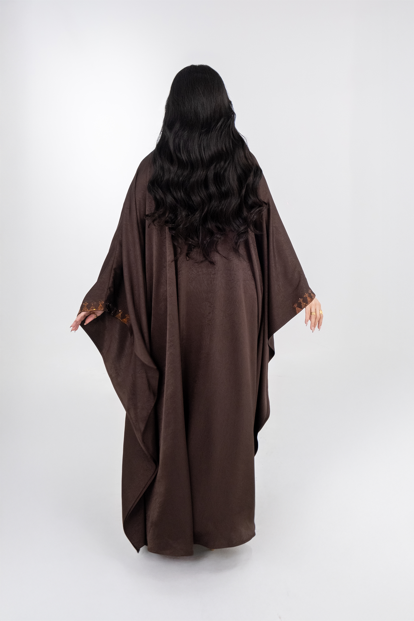 Brown Crepe Crystalized Open Besht Abaya