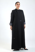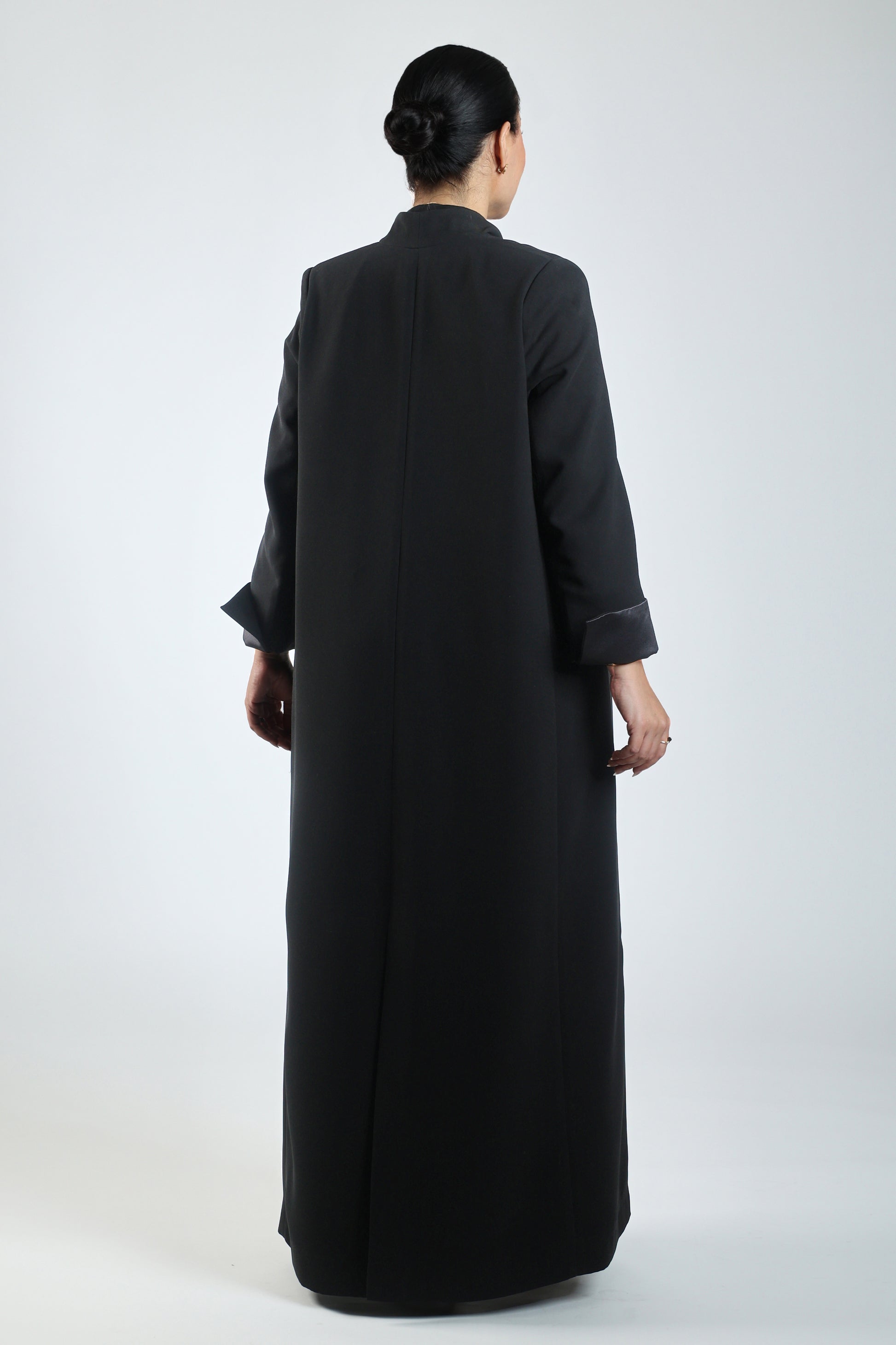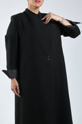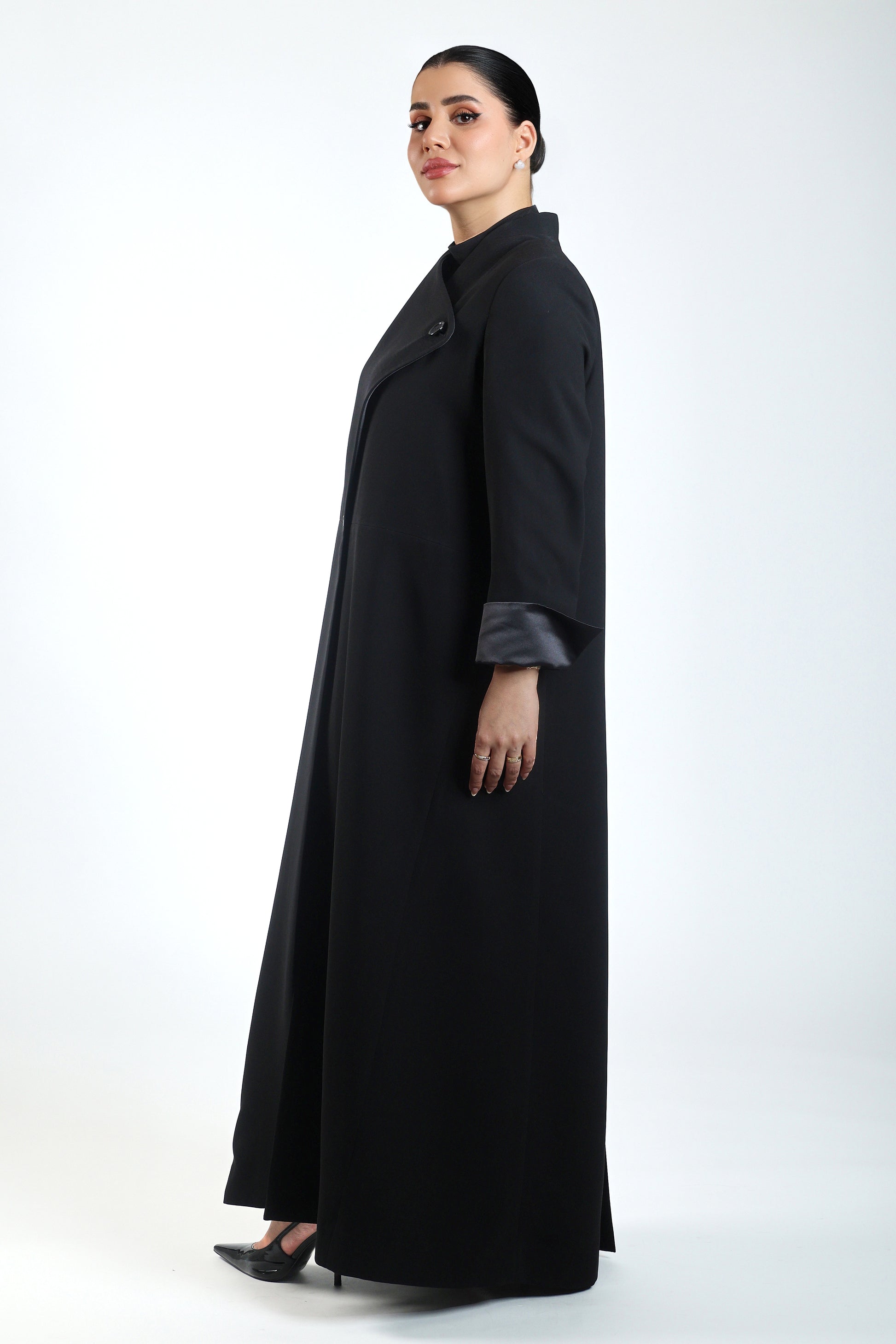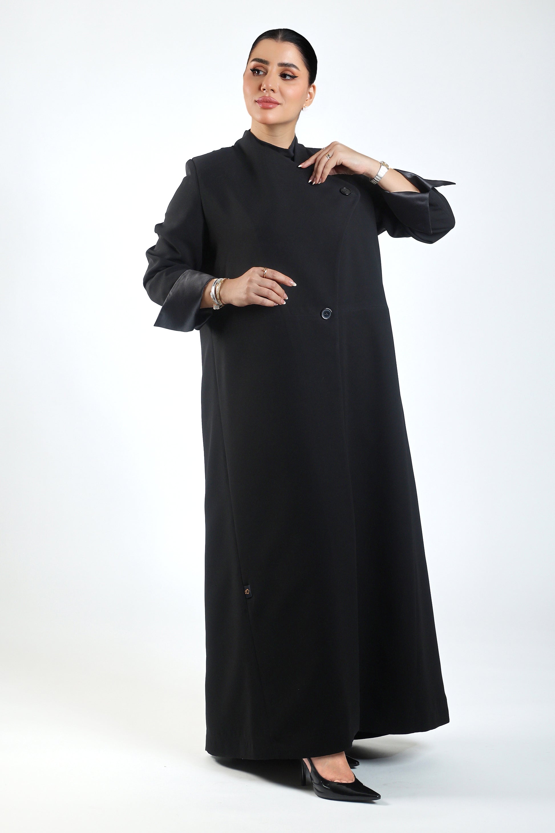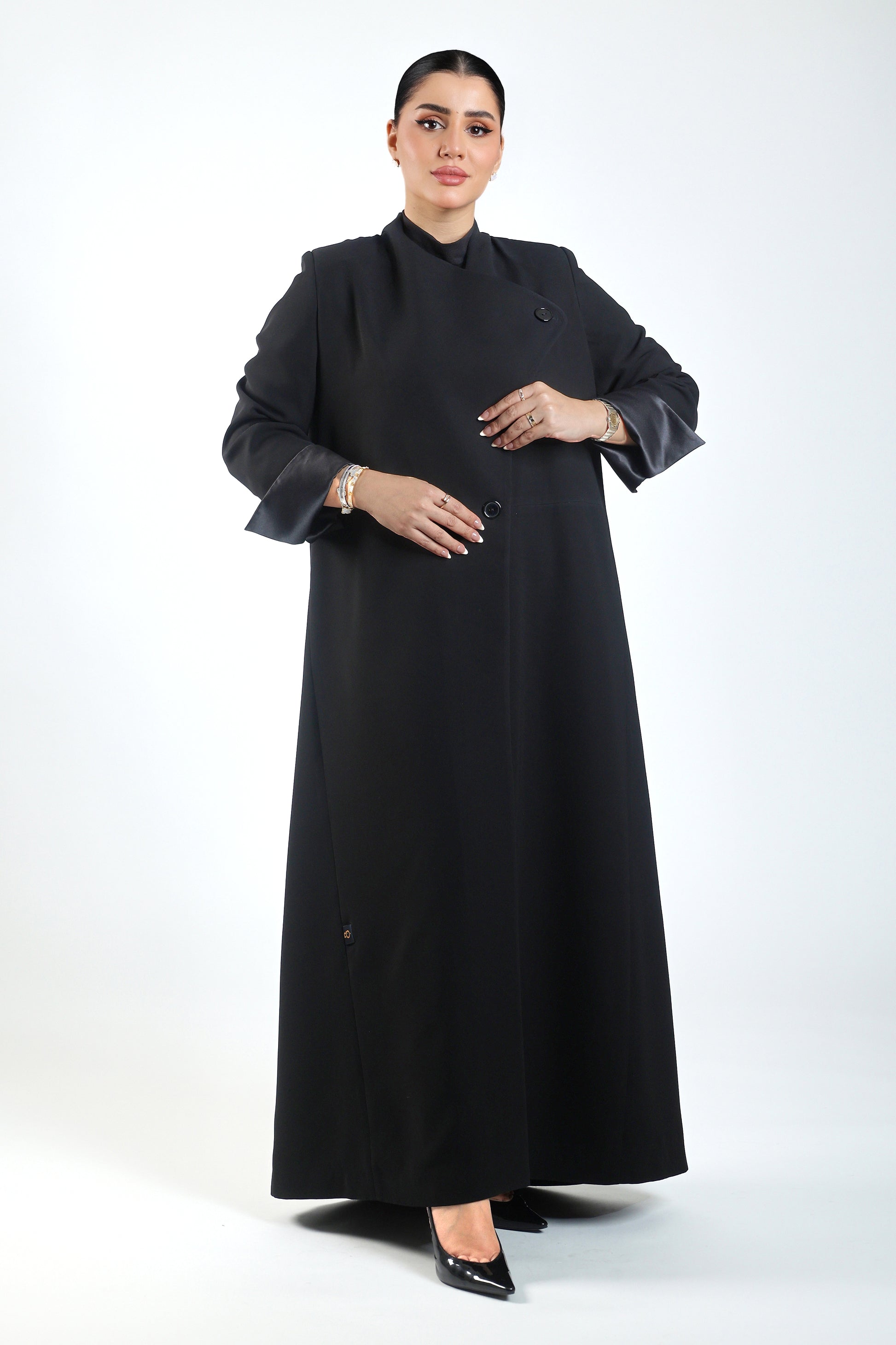 Abaya made from special Rolex fabric in wrap style with elegant buttons and sleeves lined with satin.