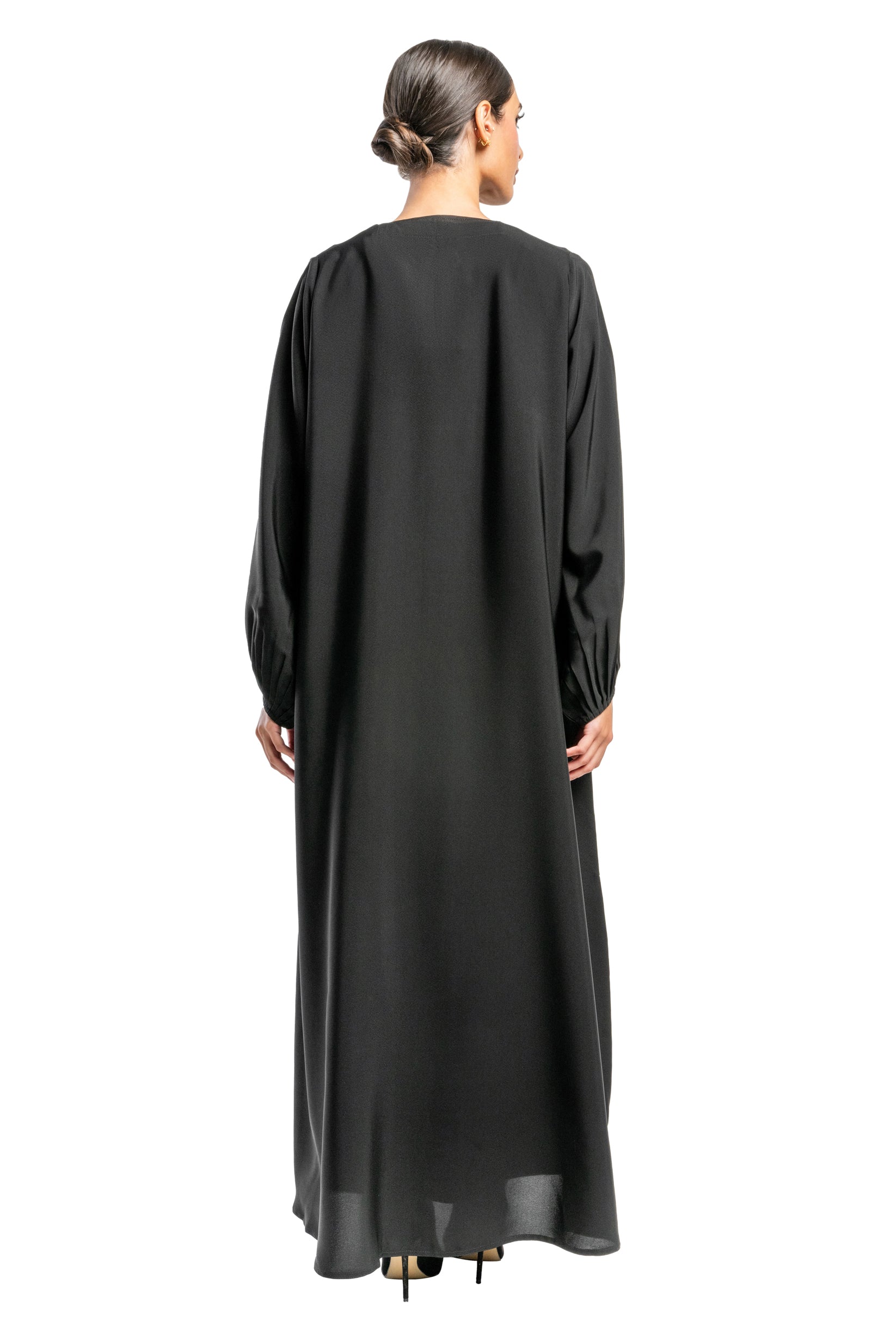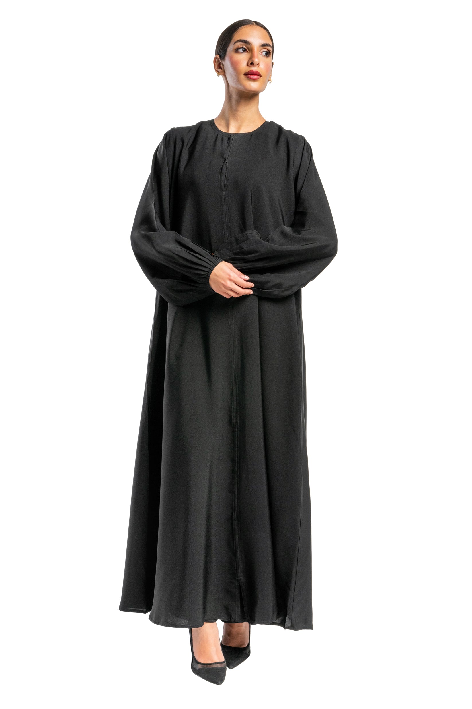 Pleated Sleeve abaya is made from soalon. It has pleated design and comes in Black. Designed in Kuwait and shipped worldwide.