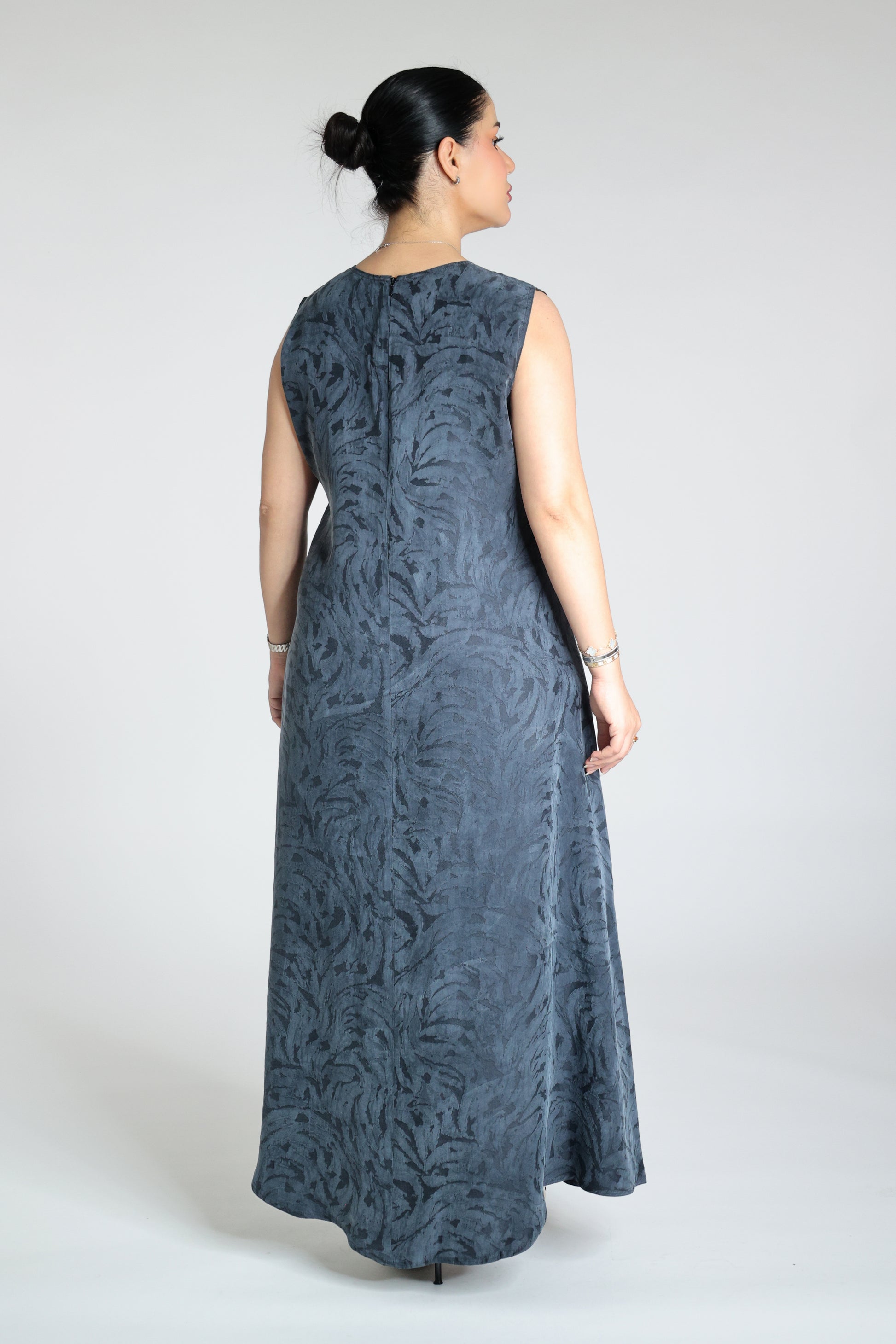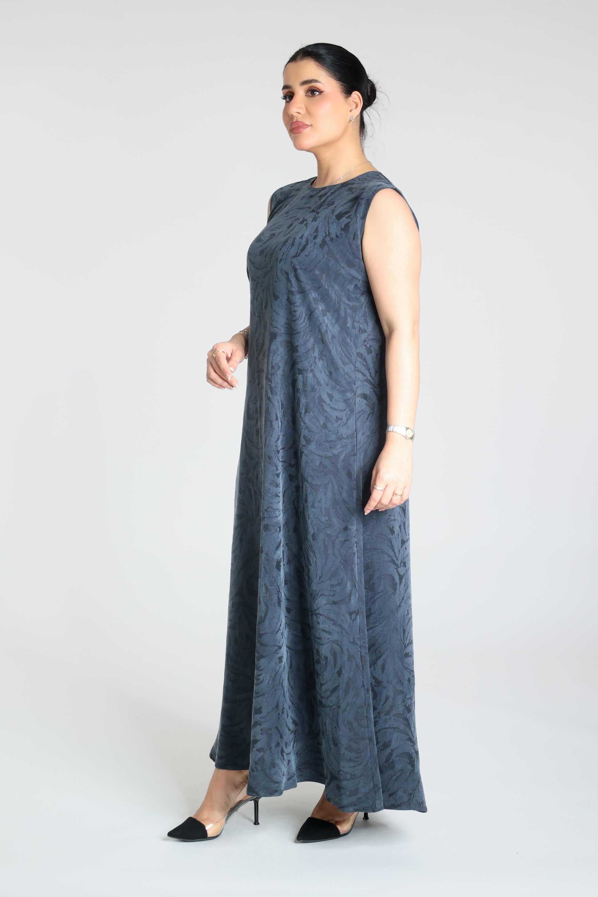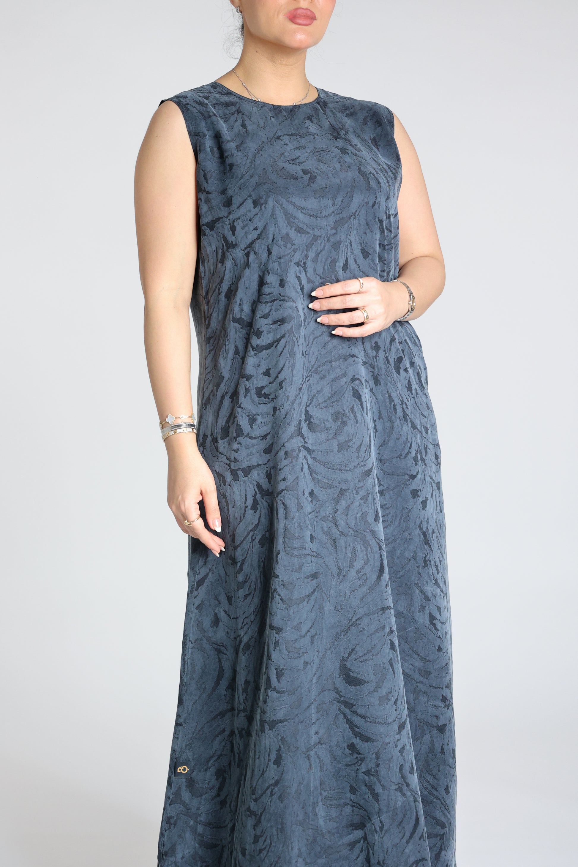 Inner piece under the abaya made from washed jacquard silk fabric patterned in Dark Blue