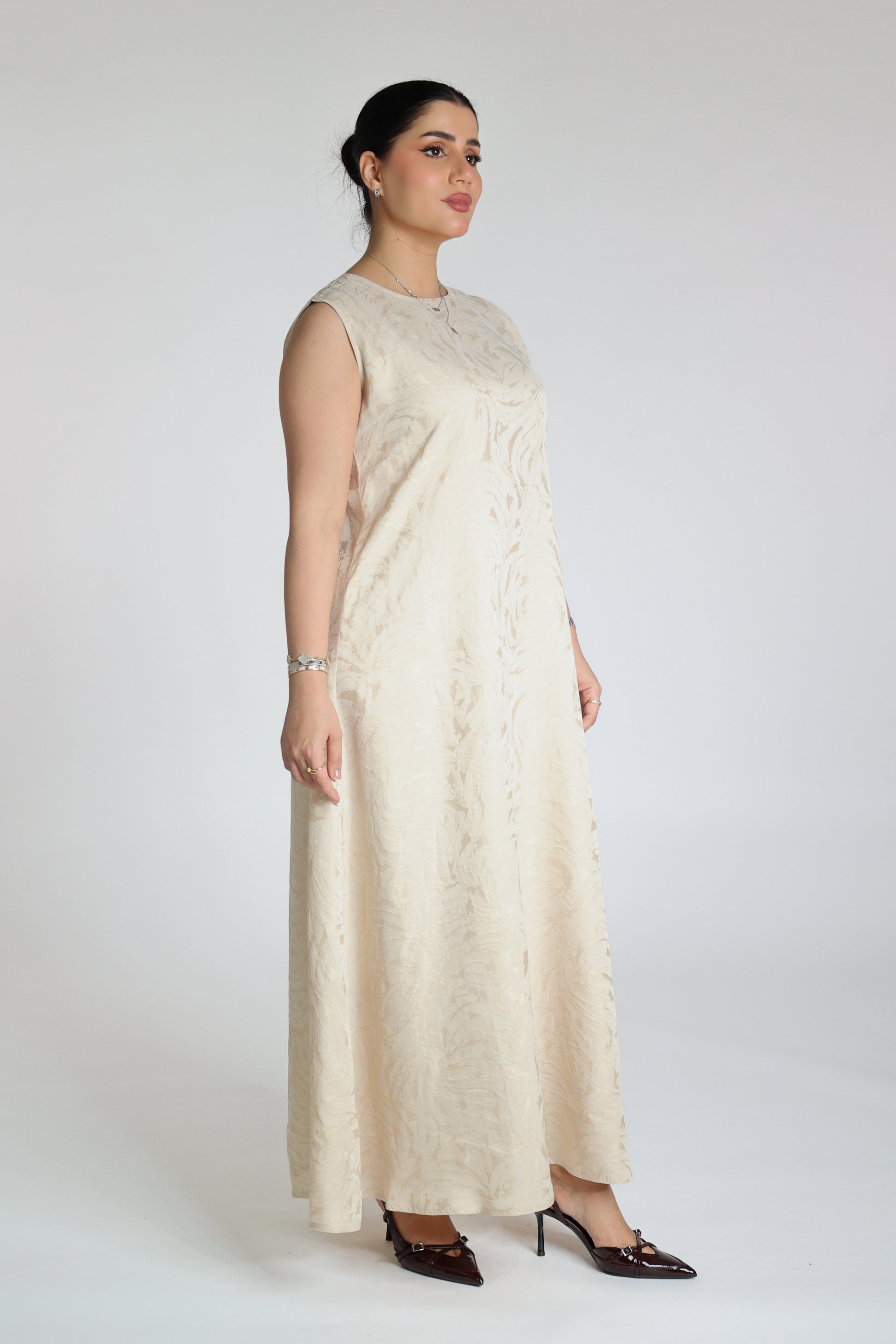 Inner piece under the abaya made from washed jacquard silk fabric patterned in Light Begie